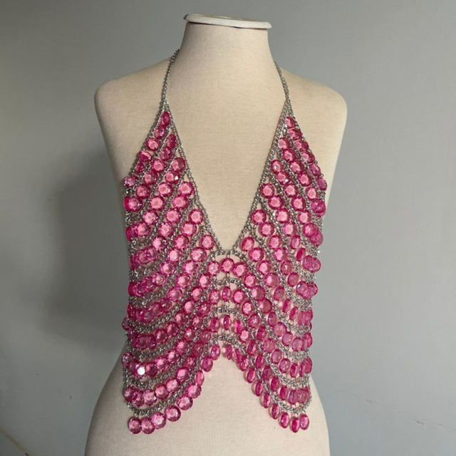Nuestro Top Diana: esta confeccionado en cadenas en niquel y gemas acrilicas.